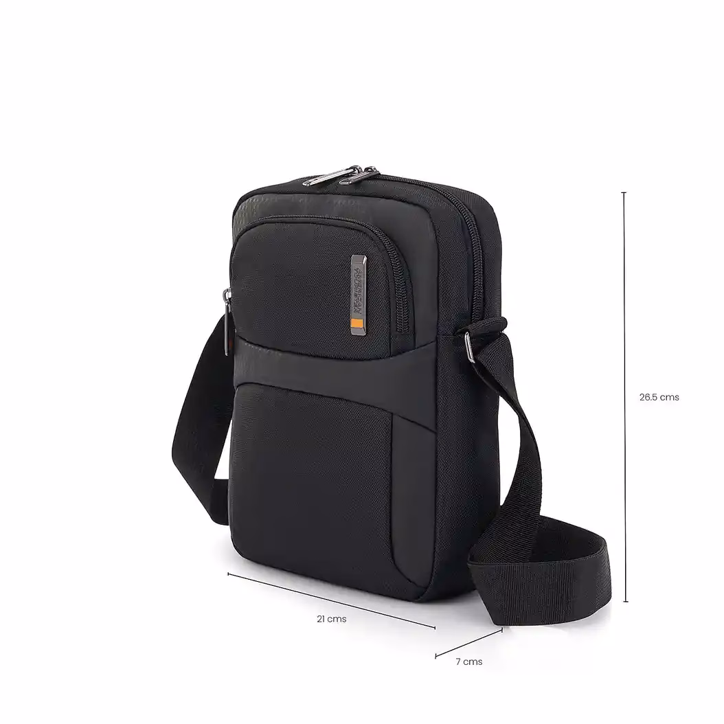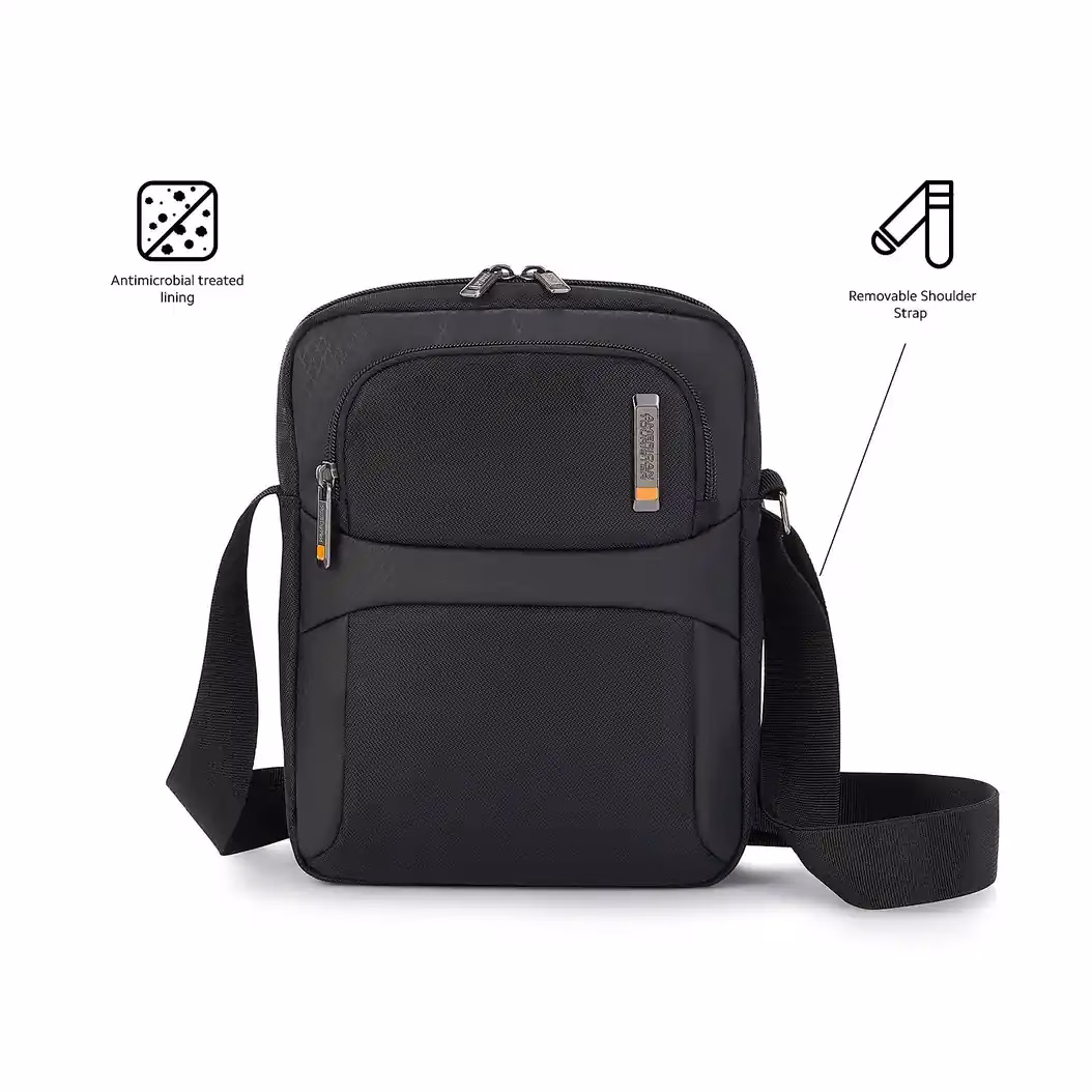 The American Tourister SEGNO Sling Bag in sleek Black combines durability with style. Ideal for school, work, or travel. SHOP NOW!