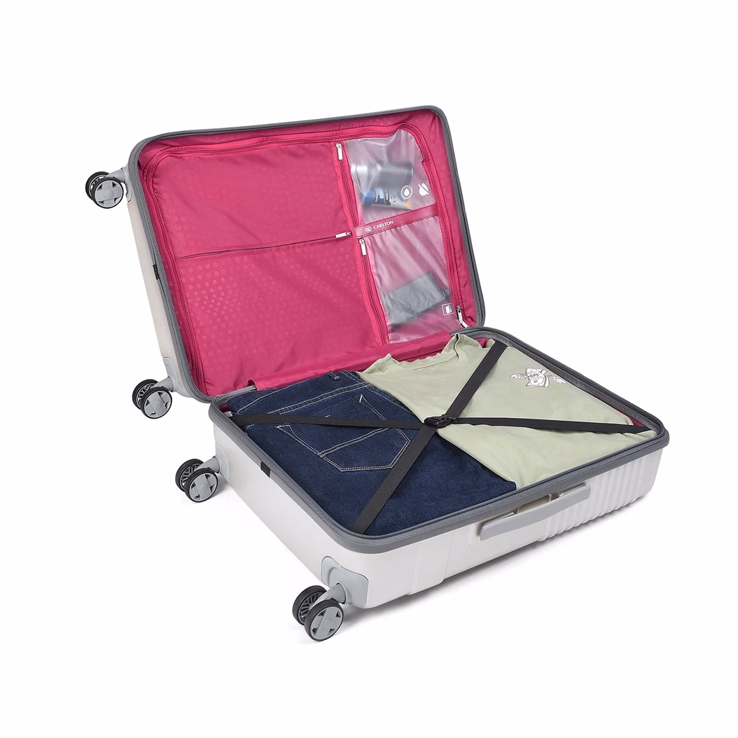 The Carlton Alumina Hard trolley combines both style and functionality. Featuring an 8-wheel spinner system, it ensures smooth rolling and stability. Additionally, the double wheels offer enhanced maneuverability, while the TSA lock provides top-notch security. Made from durable polyester, this trolley is ideal for frequent travelers. Furthermore, it comes with a 5-year international warranty, guaranteeing peace of mind.