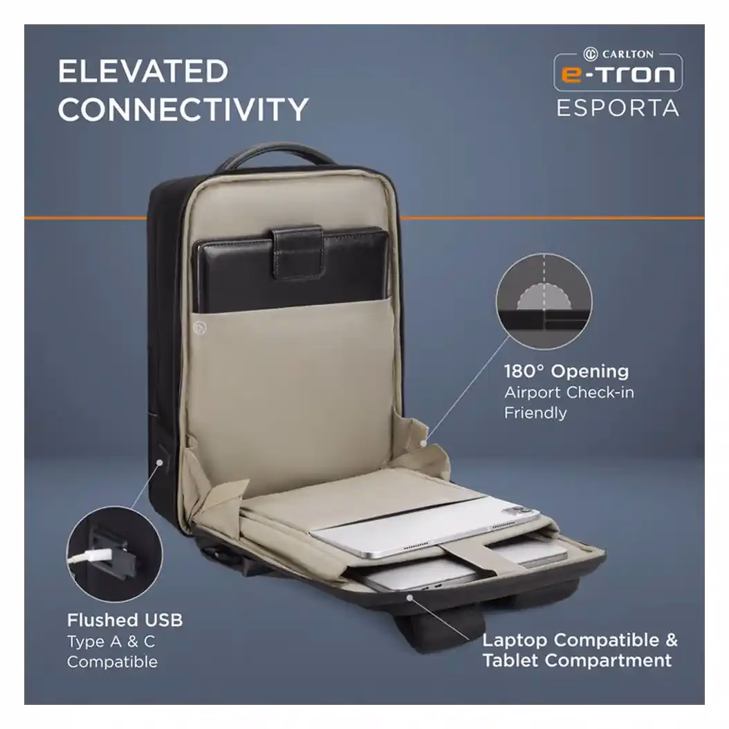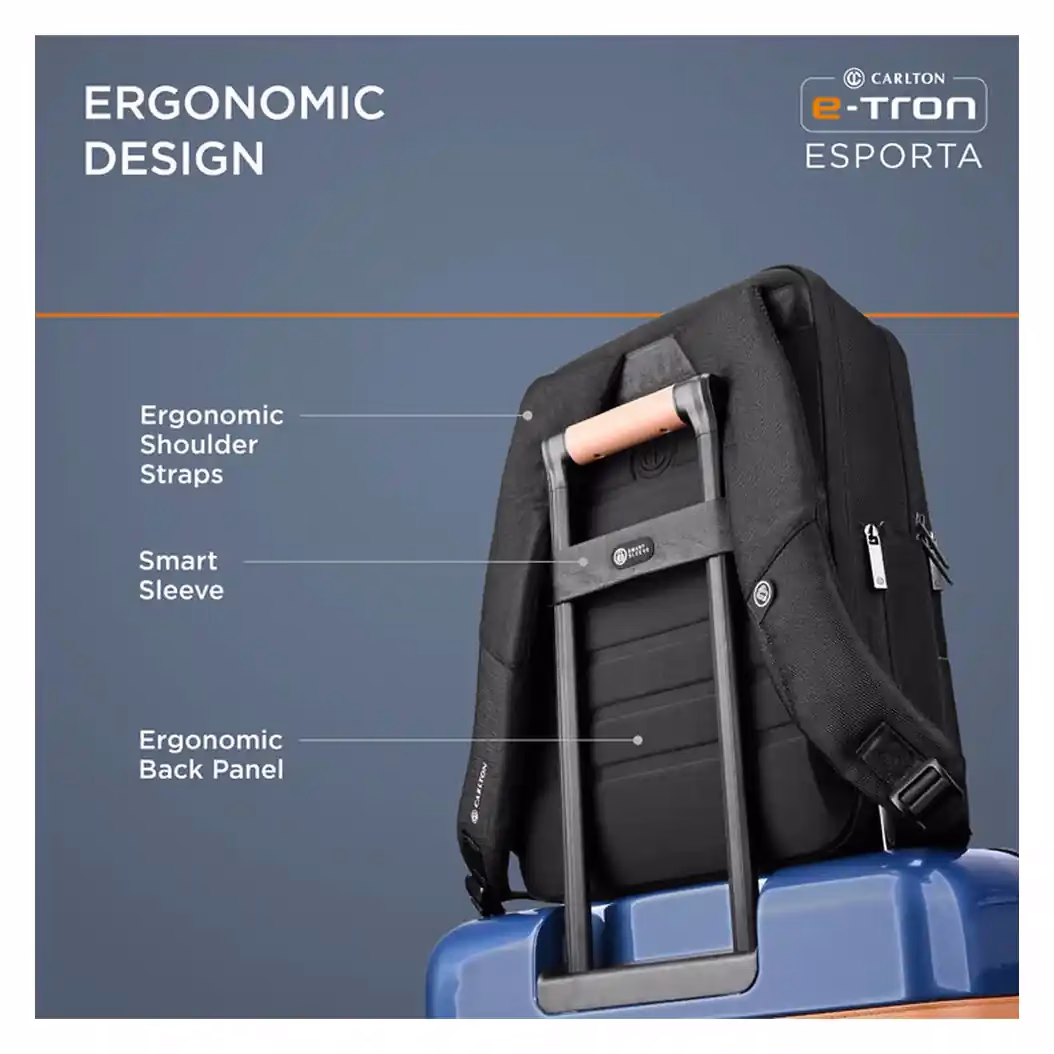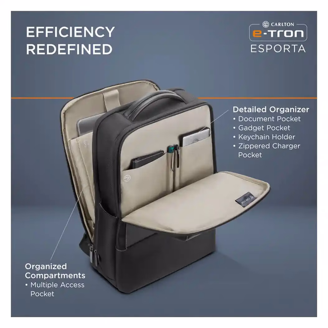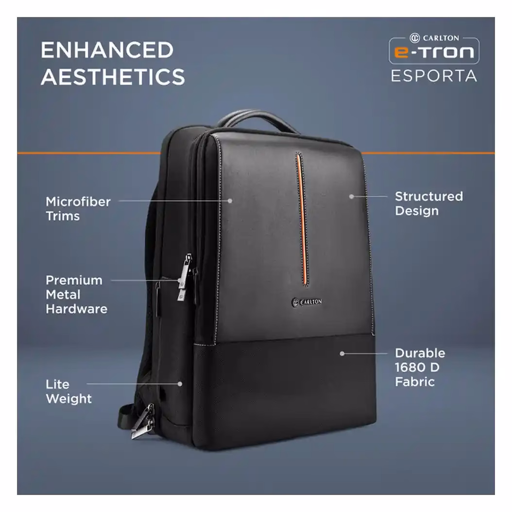 The Carlton ESPORTA LP Backpacks is a stylish and practical black backpack, built for daily use