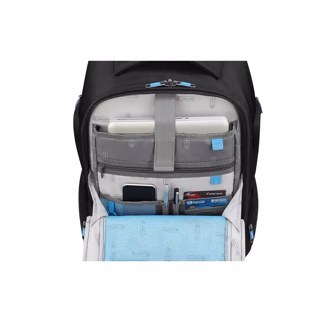 The Carlton West End Backpacks, sleek black backpack for work, travel, and school.