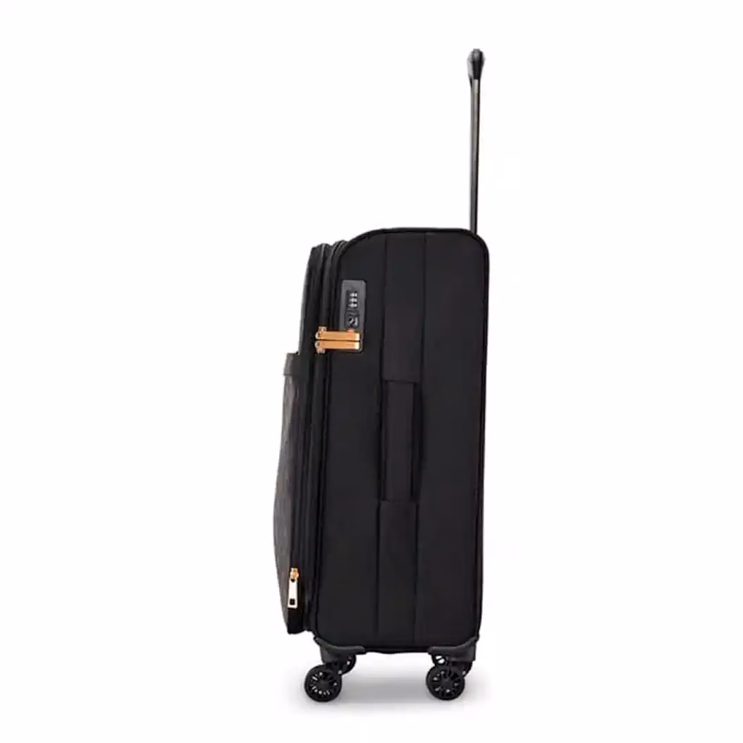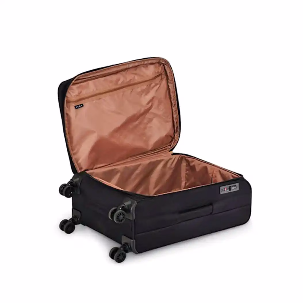 Travel in style with the DKNY Impressionist Range Hard Luggage Bag. This modern and iconic cabin trolley boosts your confidence and elevates your impact. Moreover, the durable PVC + Poly body features a unique pebble pattern, making it tough yet stylish. Additionally, the smooth 360-degree all-way wheels ensure silent and effortless movement. You will also enjoy the luxurious comfort grips and secure zippers. Furthermore, it is water-resistant and expandable up to 5 cm. The integrated TSA lock keeps your belongings safe. With one spacious compartment and an adjustable strap, it’s the ideal travel companion. Plus, it comes with a 3-year limited warranty for your peace of mind.