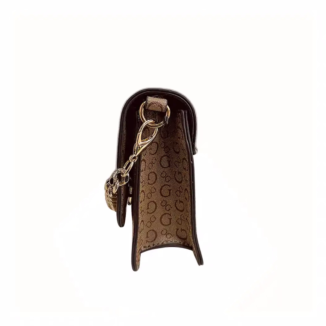 The Guess SAFFRON -1 Cross Body Bag in Mocha. A stylish and functional hand bag with streamlined compartments and a rich, versatile tone. Shop online today at Baginnov!