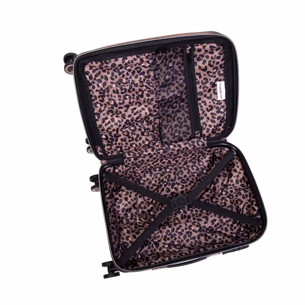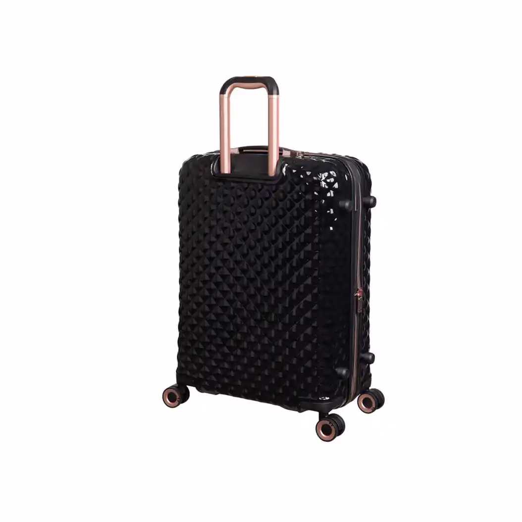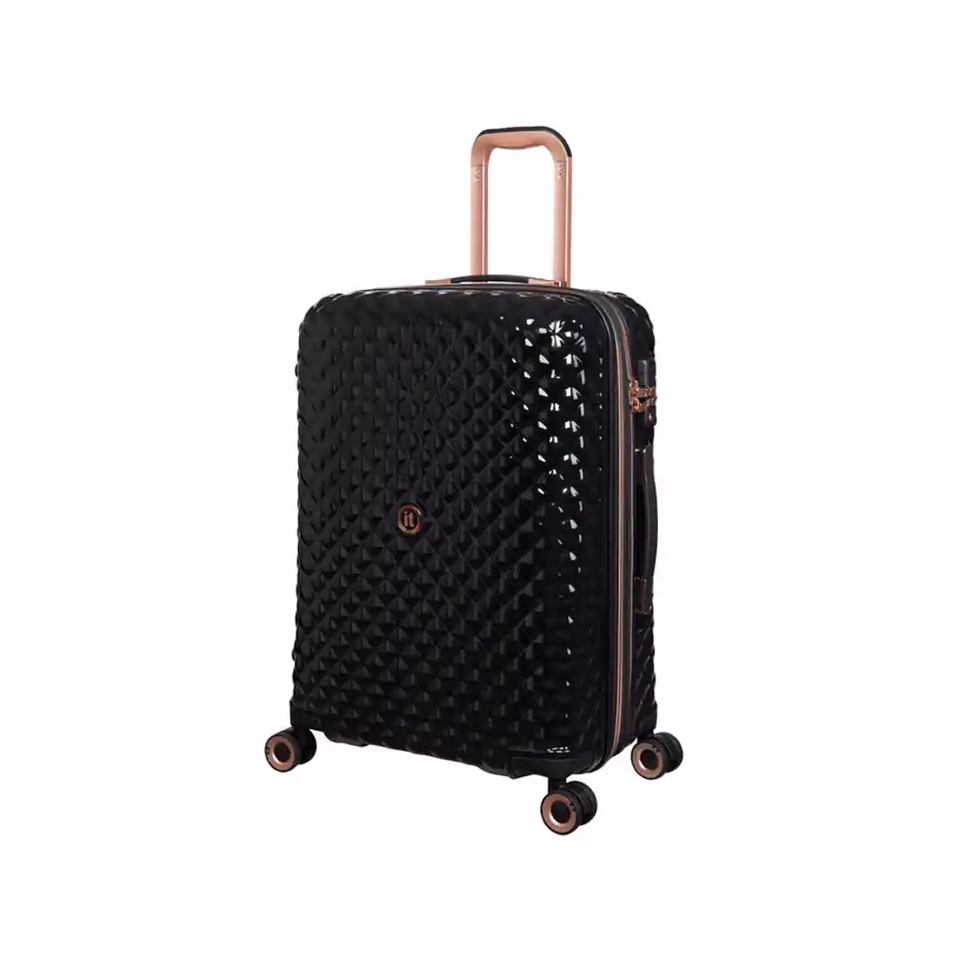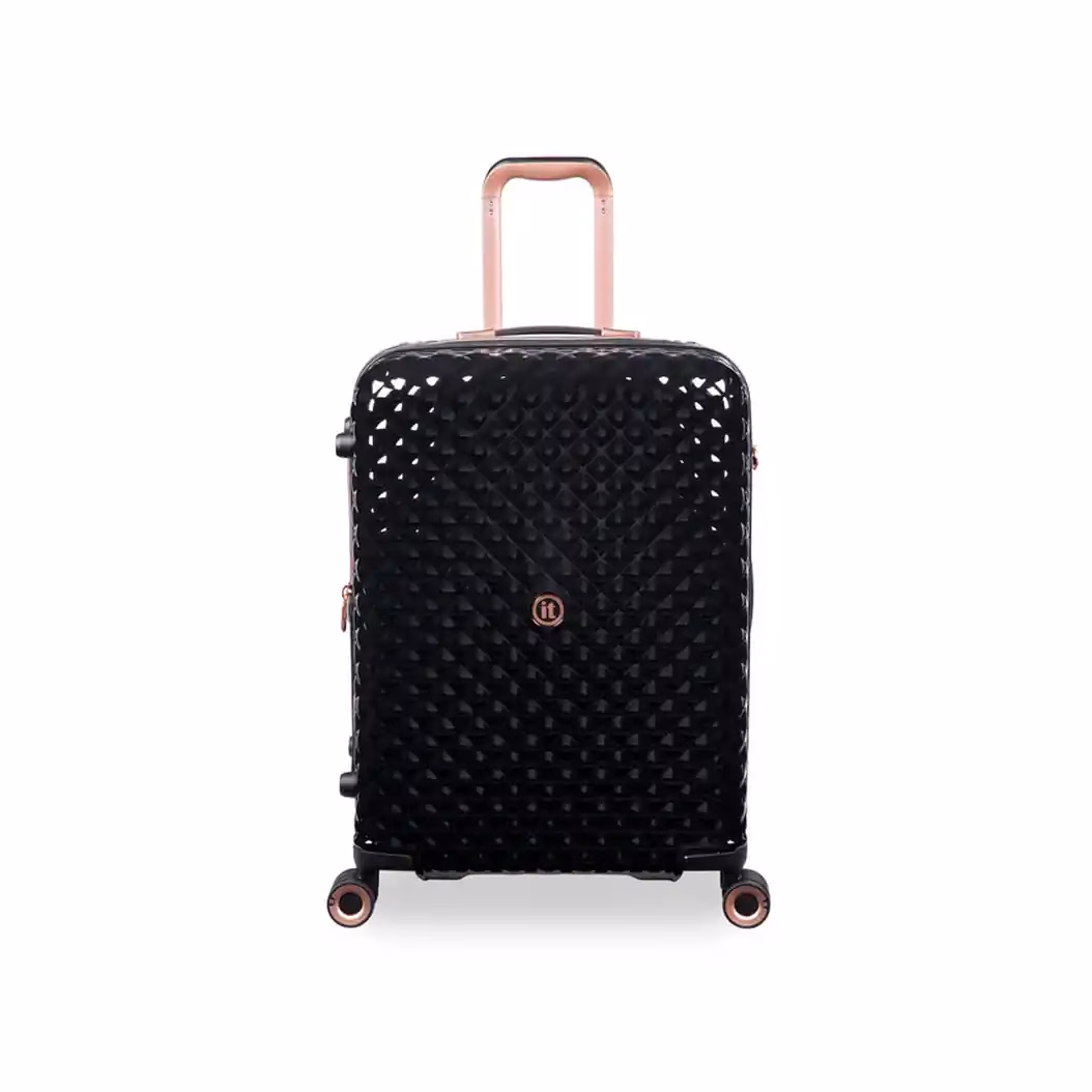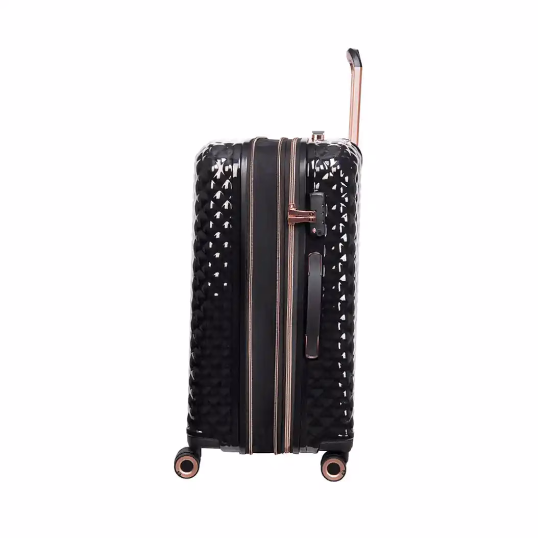The It Luggage GLITZY 28-inch hard trolley in black. Spacious, durable, and sleek—perfect for vacations or business travel. SHOP NOW!