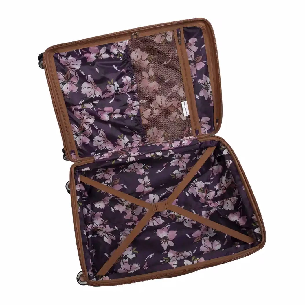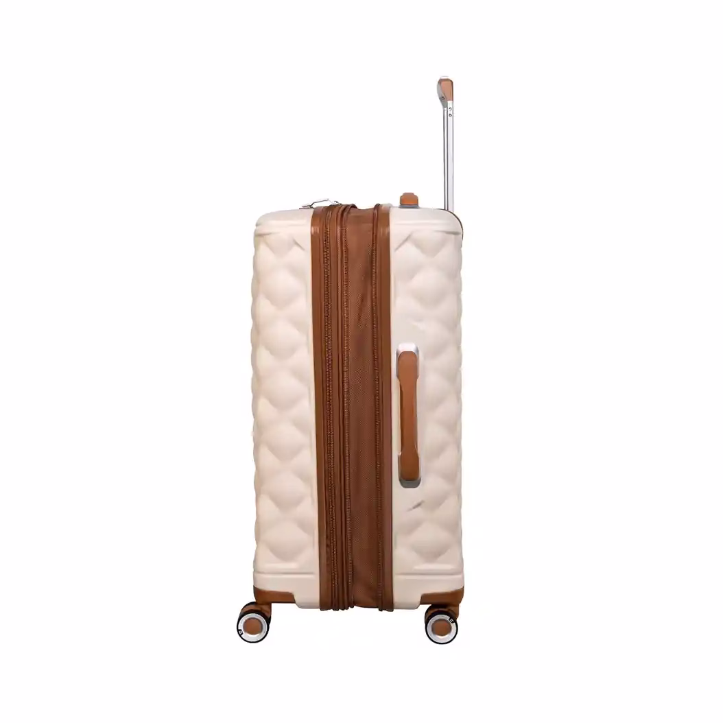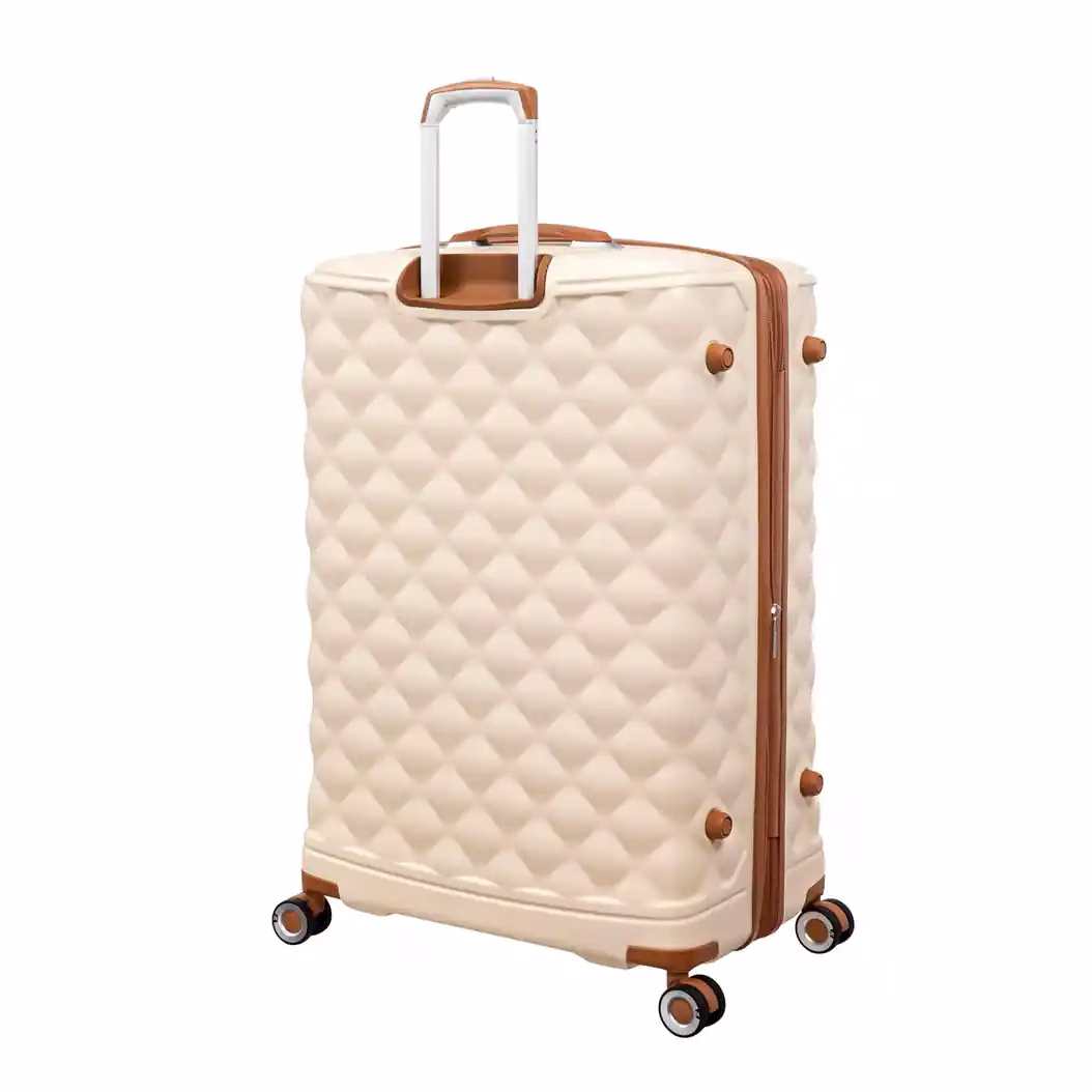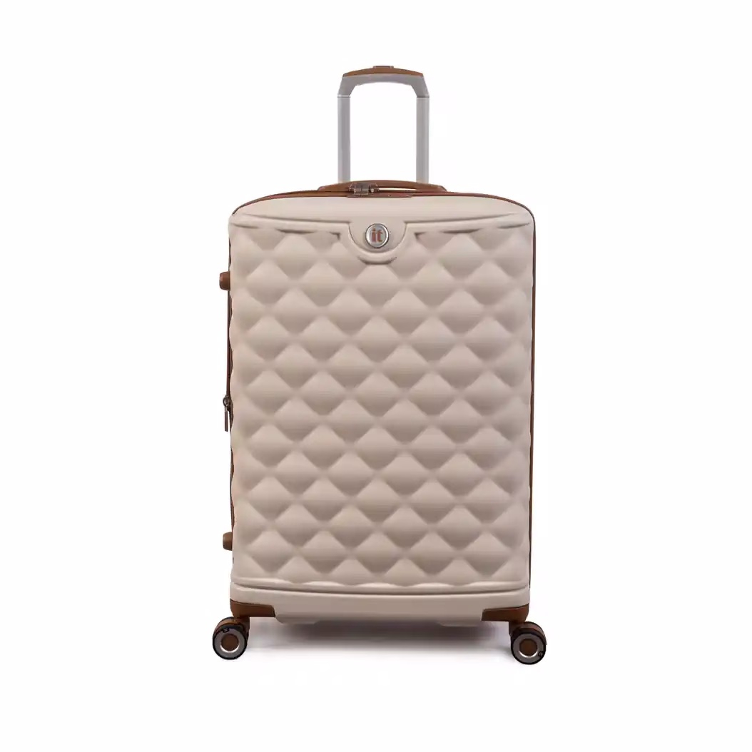 It Luggage Indulging Hard Trolley in Cream. This medium-size (24 inch) hard trolley offers spacious packing, smooth wheels, and a durable shell. Ideal for effortless travel. SHOP NOW!