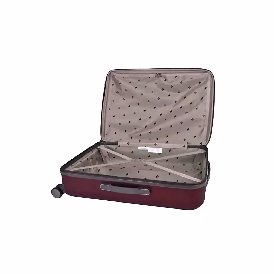 It Luggage Quaint Hard Trolley in Wine. This 24-inch durable suitcase offers spacious packing, smooth wheels, and sleek design. Ideal for holidays or work trips. SHOP NOW!