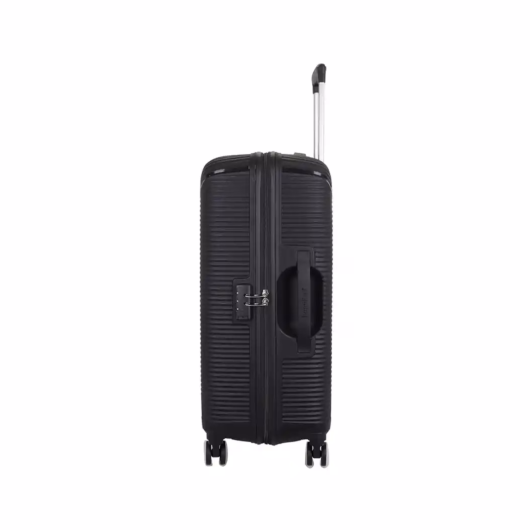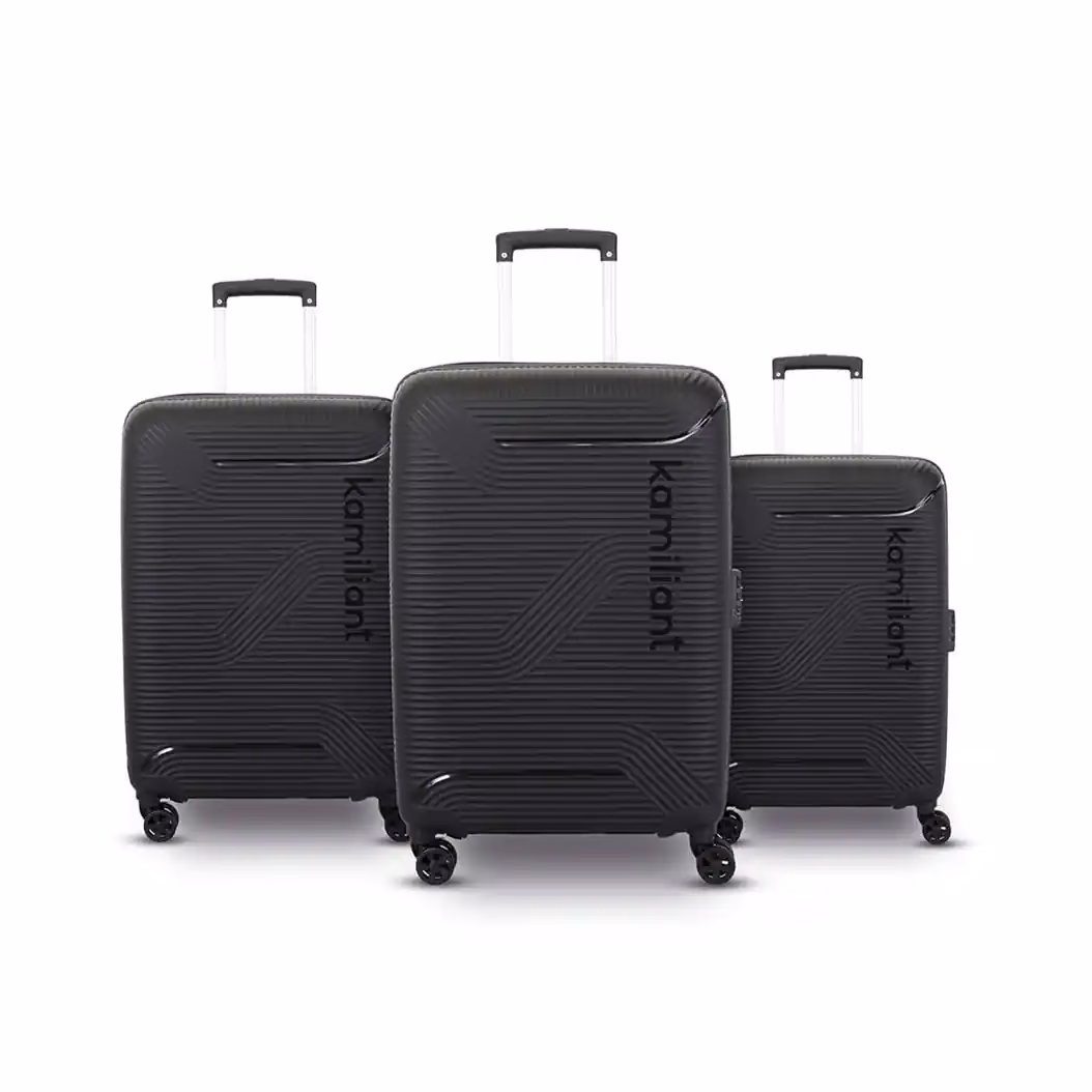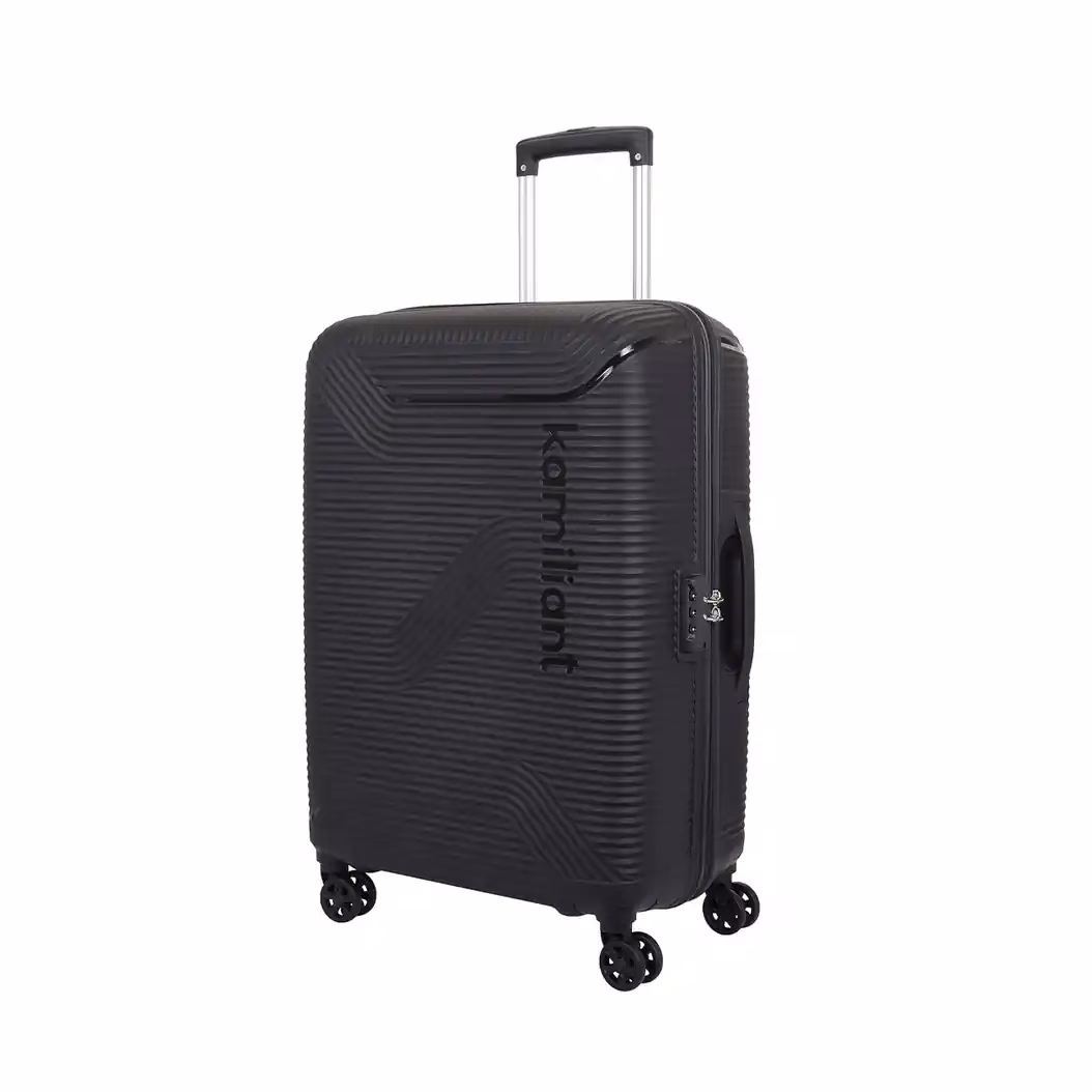 The Kamiliant Nexus Black Hard Trolley. A lightweight, durable, and easy to maneuver with 8 wheels, packing straps & a multi step handle. Shop Online today at Baginnov!
