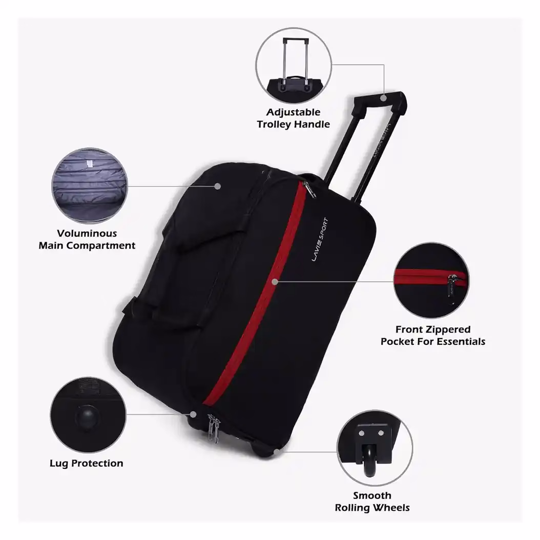 The Lavie DMGE620019K4 Black Duffle Trolley. A premium quality & smart design for travel ease. Buy durable luggage online now at Baginnov!