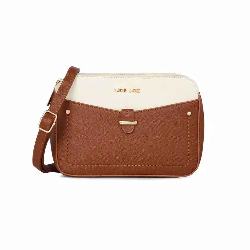 The Lavie LX RISE24 Sling Bag in Tan. A stylish, compact women’s sling bag ideal for daily wear. Lightweight, durable, and spacious. Buy Lavie sling bags online in India.