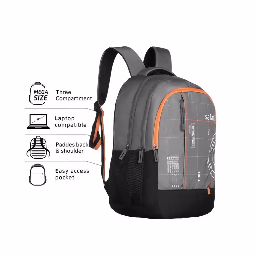 The Safari TRIO Backpack offers ample storage with three main compartments to keep your essentials organized. Its front pocket provides quick access, while the side pockets hold water bottles or small items. Additionally, the padded shoulder straps and back panel ensure maximum comfort during travel or daily commutes. Plus, it comes with a 1-year manufacturer warranty for added peace of mind.