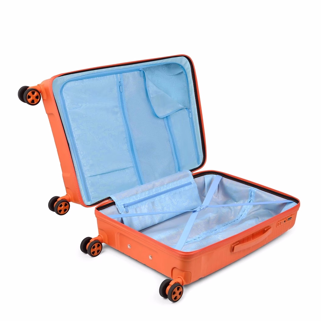 The Skybags SKYLITE Hard Trolley-Luggage is not only stylish but also lightweight and durable. Additionally, its polypropylene material ensures it is waterproof and impact-resistant. Moreover, it features a TSA-approved lock, ample storage with a wet pouch, and smooth 360-degree rotation, making travel more convenient.