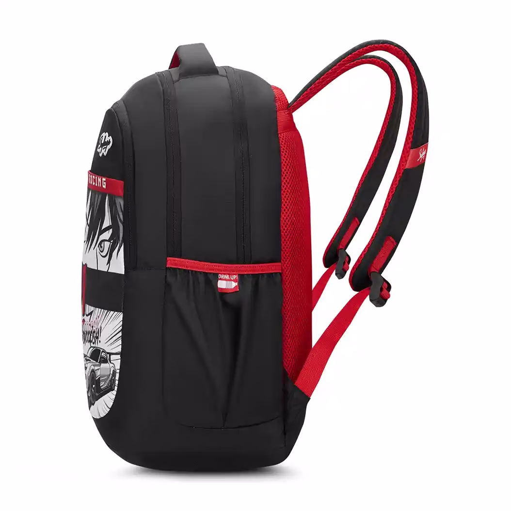 Show your anime fandom with the SKYBAGS KYRO RC 01 SCBP SWOOSH. Featuring bold designs, this anime-inspired school backpack offers three spacious compartments, providing up to 36 liters of space. Moreover, the built-in rain cover keeps your belongings dry. Additionally, the two side pockets hold bottles and small items with ease. For quick access, use the front pocket. Meanwhile, the air-mesh back panel and padded grab handle ensure comfort during long days. Furthermore, the built-to-last straps enhance durability. Ideal for school and young adventurers alike. Comes with a 12-month warranty.