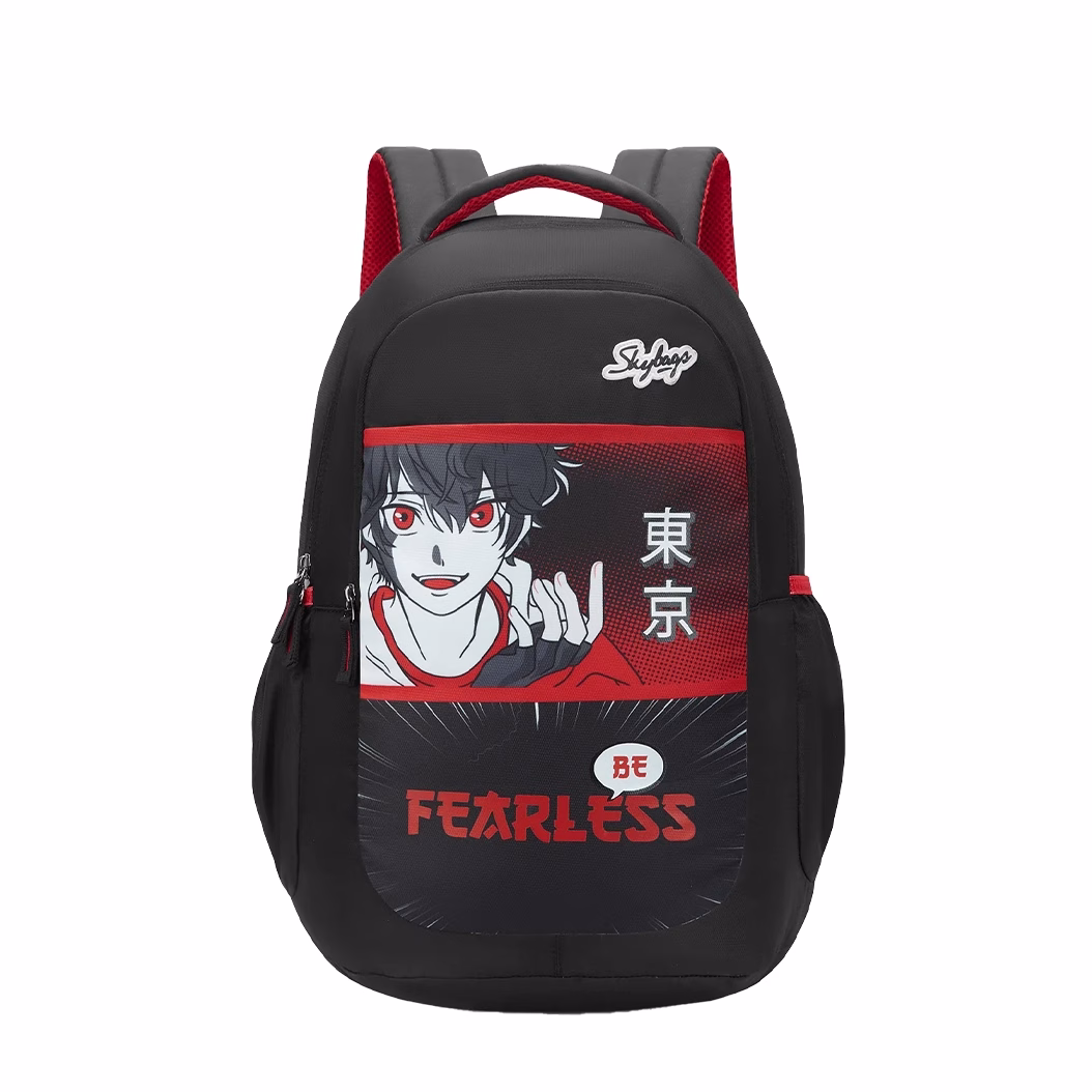 Show your anime fandom with the SKYBAGS KYRO RC 03 SCBP REBEL. Featuring bold designs, this anime-inspired school backpack offers three spacious compartments, providing up to 36 liters of space. Moreover, the built-in rain cover keeps your belongings dry. Additionally, the two side pockets hold bottles and small items with ease. For quick access, use the front pocket. Meanwhile, the air-mesh back panel and padded grab handle ensure comfort during long days. Furthermore, the built-to-last straps enhance durability. Ideal for school and young adventurers alike. Comes with a 12-month warranty.