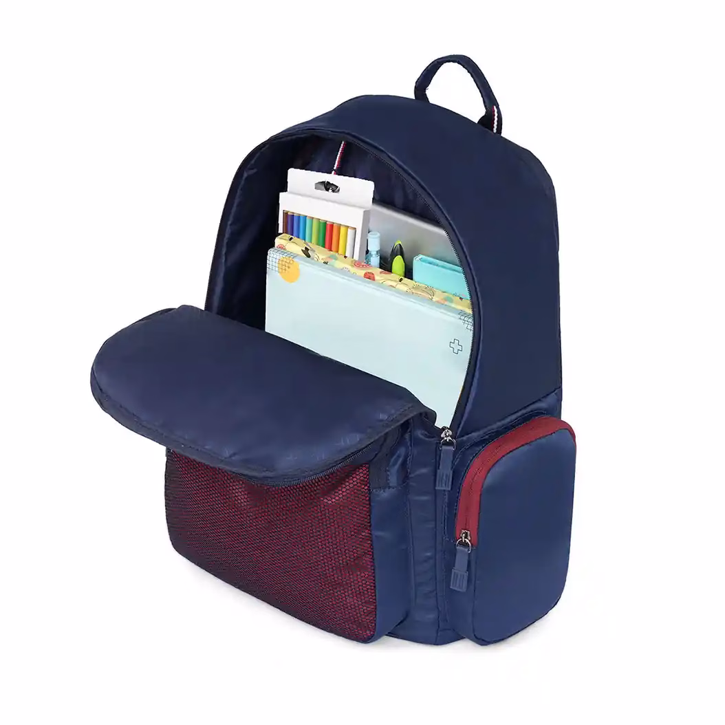 The Tommy Hilfiger Brock Backpack perfectly blends bold style with everyday function. While the navy and red palette makes a statement, the iconic logo adds a classic touch. Meanwhile, the breathable mesh back offers all-day comfort. Multiple compartments and organizers ensure your gear stays in place. Furthermore, the water-resistant fabric and rain cover protect your essentials, rain or shine.