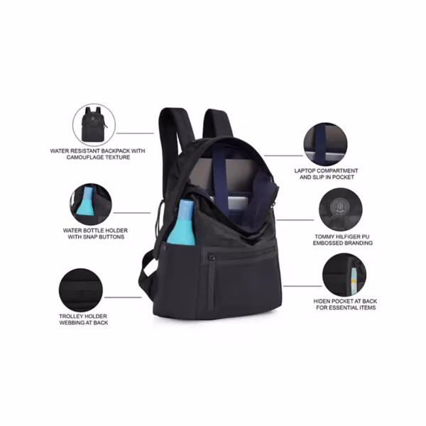 The Tommy Hilfiger Lenden Laptop Backpack combines style, security, and functionality for modern travelers. Designed with a dedicated laptop compartment, it ensures safe storage for your devices. Additionally, the slip-in pocket and hidden back pocket provide extra space for essentials while keeping valuables secure. Moreover, the zip closure enhances convenience, offering quick and easy access to your belongings. Whether for work or travel, this durable and stylish backpack is a perfect companion. Plus, it comes with a 1-year domestic warranty, ensuring long-lasting reliability.