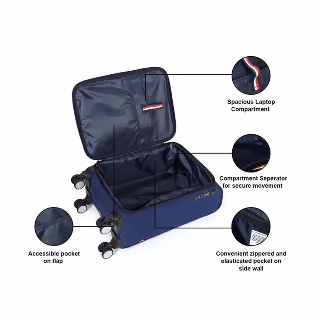 Travel with ease using the Tommy Hilfiger SANDIEGO Overnighter soft luggage, designed for modern explorers. Its water-resistant fabric protects your belongings, while the slim telescopic handle and 360° branded wheels ensure effortless movement. The anti-theft zippers and TSA lock provide enhanced security, keeping your essentials safe. Whether you’re on a weekend getaway or a business trip, this soft luggage offers convenience, style, and durability.